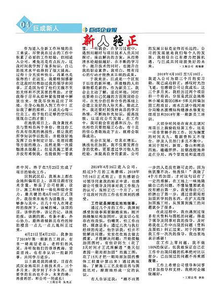 2018年4月16日进入公司,经过3个月的工地磨练,2018年7月16日正式转正;首先感谢公司领导同意我的转正申请,也感谢公司领导及同事对我工作能力的认可;现转正已一个月了,对于这段时间的工作也有深刻的感受。