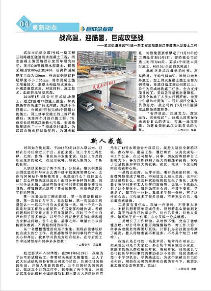 此时正是武汉最热的时节,高温酷暑,平均气温38℃,匝道口为室外施工,加上清水混凝土施工全部为钢模板,匝道口温度高达40度以上。公司为完成地铁施工任务,全力支持项目施工,采取各种措施防暑降温,项目全体施工人员实行两班制,错开中午最热时间施工。通过项目全体人员的努力,我公司终于9月10日圆满完成现场浇筑任务。