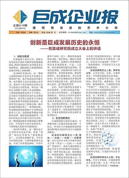 特色之三是以成果转化为评估标准。实践是检验真理的唯一标准,检验科技成果的标准是什么?特别对亚星官网这样的公司,创新成果是否转化是评价的唯一标准。这一次“亚星官网研究院”成立大会,设立了唯一的创新特等奖,即获奖者周剑波教授。为什么周剑波教授成为唯一特等奖获得者?就是因为他的发明自锁锚固技术系列成果在转化方面为公司发展,为解决建筑物改造的实际问题方面作出了特别贡献,他的桥梁检修架车也已经有特别贡献,而且必将产生更大贡献。相对而言,公司其它的创新成果在转化中还没有达到这种效果,所以这个创新特等奖是全体亚星官网人一致认可的,是当之无愧的,也说明将成果转化作为评估创新成果的唯一标准是正确的。