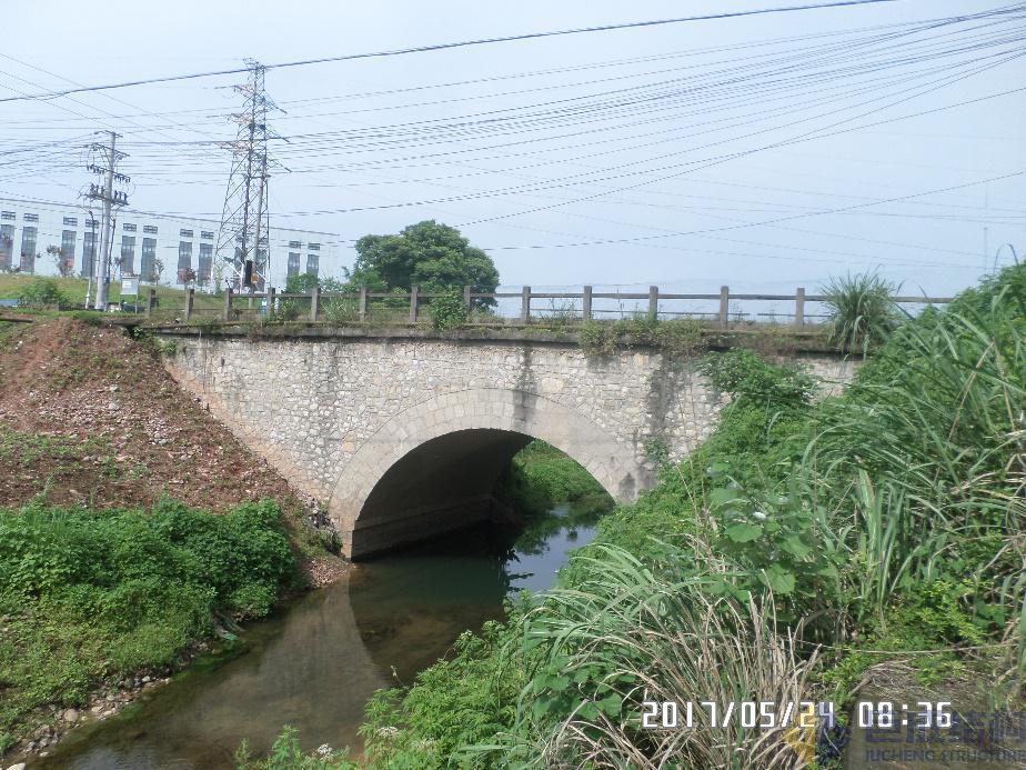 项目概况:国电江西电力有限公司万安水力发电厂生活区南河桥是一座单跨上承式单波双曲拱桥。为了解南河桥的结构现状,判断桥梁结构承载能力是否满足安全通行进出厂重载车的荷载要求,2018年7月,中国国电集团江西电力有限公司万安水力发电厂委托我公司技术人员对本桥进行现场检测及静、动载试验,为后期桥梁使用、养护和加固提供依据。