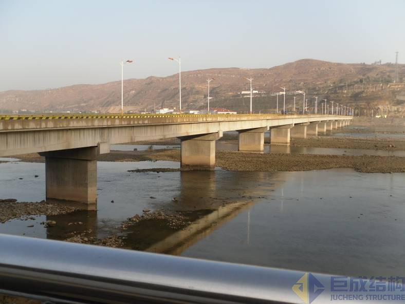 项目概况:黄河龙口公路桥建成于2004年,桥梁总长618.17m(含引道),为单跨40m的先简支后连续预应力混凝土T型梁桥桥型,桥跨布置为5×40m+4×40m+5×40m,桥跨跨径总长566.80m,桥面竖曲线半径为8000m。桥面布置为:11m(车行道)+2×0.5(防撞护栏),桥面铺装为水泥混凝土桥面。