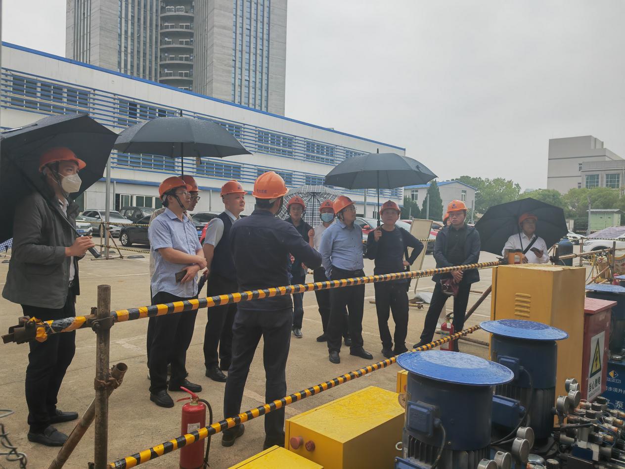 在亚星官网钢滑道群控同步顶升工程试验项目现场,研究院院长助理周志勇对钢滑道群控同步顶升试验的背景和目的进行了介绍,对该技术的安全性、高效性、经济性等特点进行说明,双方在应用场景方面进行了探讨和交流。