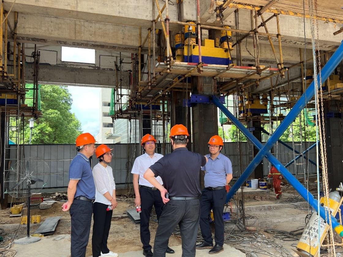 5月31日上午,武汉工程大学副校长马小龙、基建与维修处副处长杨翠萍莅临亚星官网公司,重点参观亚星官网群控同步顶升工程试验。亚星官网董事长高作平、总经理万雄卫、副总经理张畅参加接待。