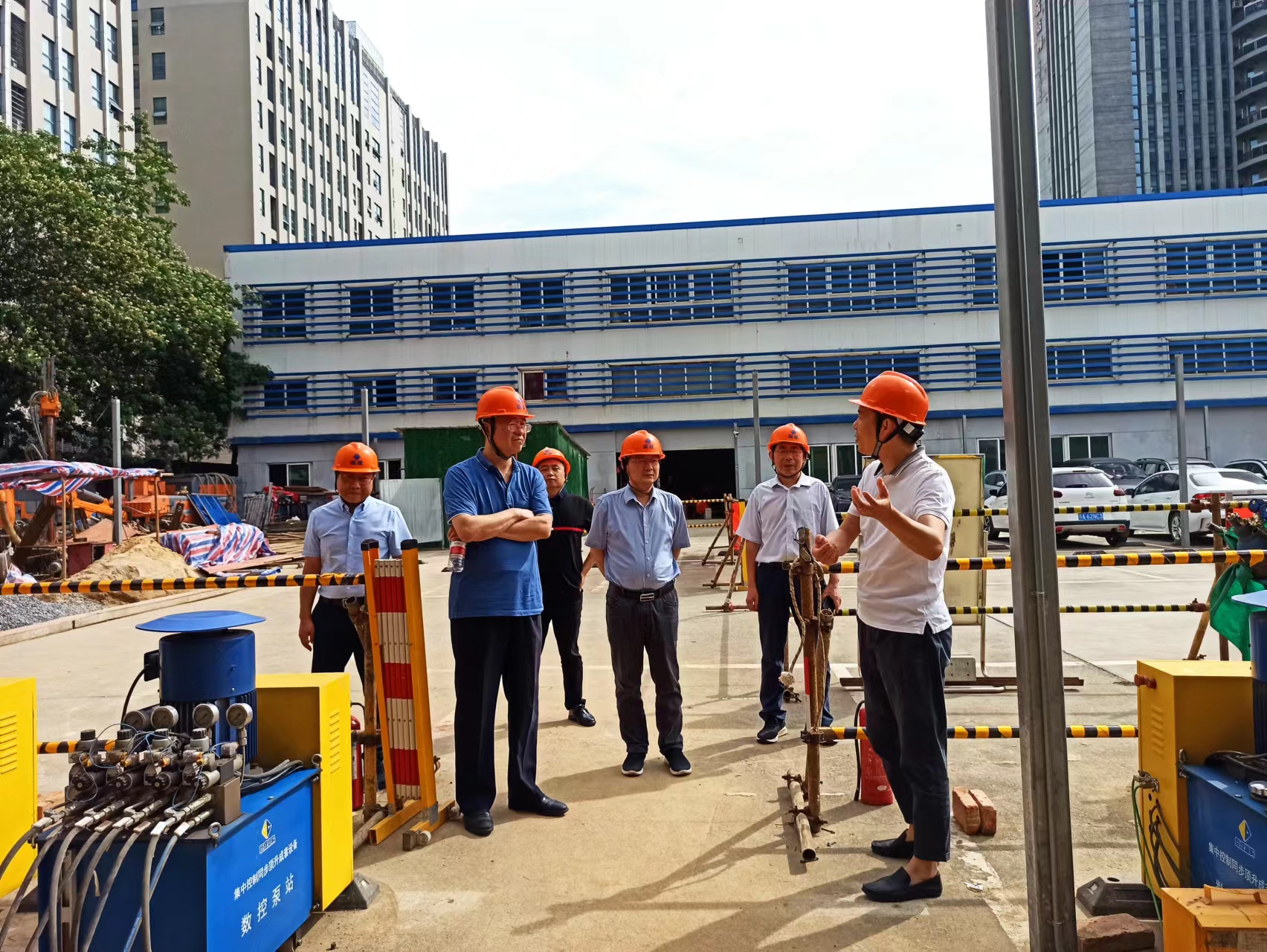 梅院长一行首先来到亚星官网群控同步顶升工程试验项目现场,亚星官网研究院院长助理周志勇介绍了顶升试验的背景、目的和技术方案。双方就钢滑道顶升技术对砌体结构顶升增层的设计方法和施工技术展开了交流和讨论,特别是对托盘梁的受力模型进行深入探讨。大家一致认为亚星官网钢滑道顶升技术能够在城市更新、老旧小区改造等领域发挥重大作用。