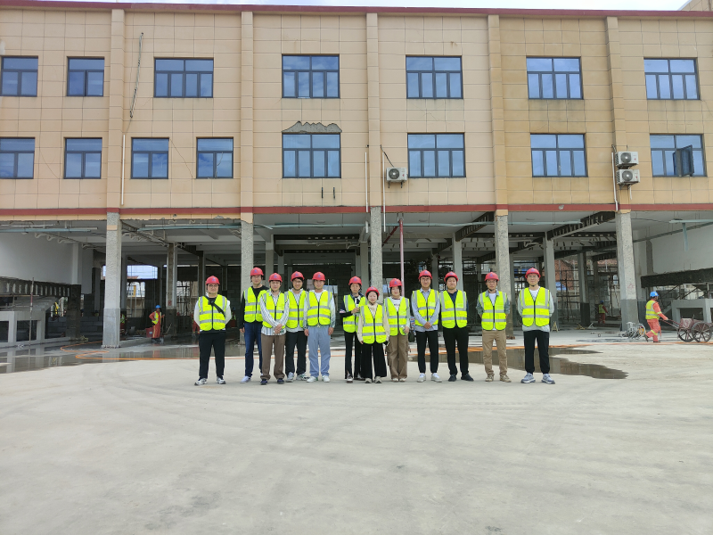 工程公司经理王金刚带领新员工参观鄂州电子厂钢滑道移位工程项目