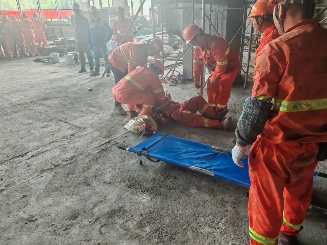 四川德阳项目:开展高处坠落专项演练,医疗组以标准化操作,在 5 分钟内高效完成伤员骨折固定与安全转运,应急救援争分夺秒。